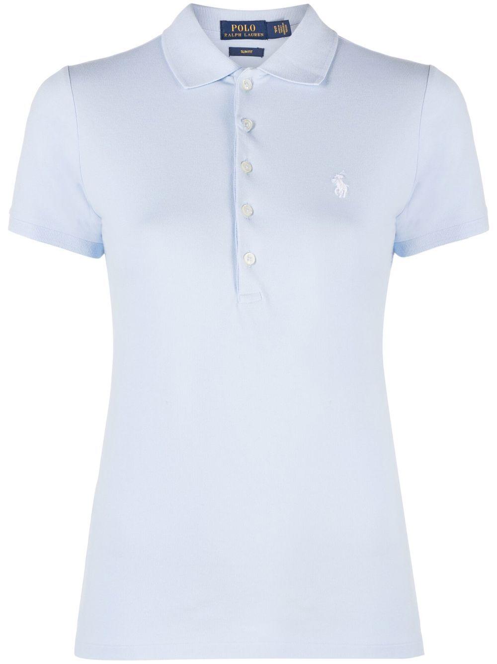 baby blue stretch-cotton piqué weave polo collar signature Polo Pony motif short sleeves unlined high-low hem short front button placket