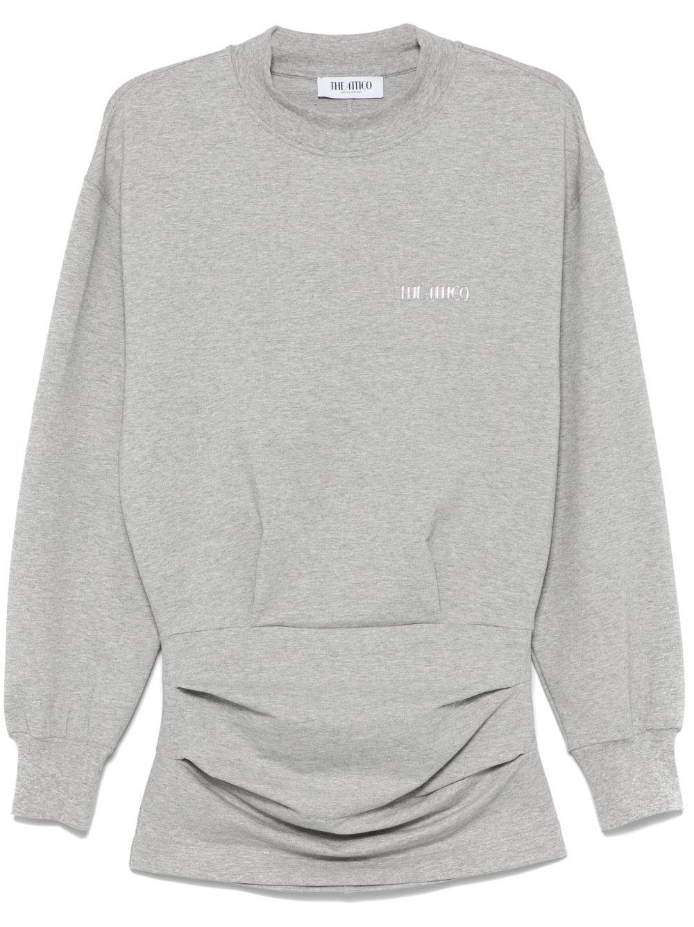 heather grey ribbed cuffs crew neck drop shoulder pleat detailing