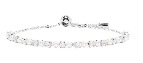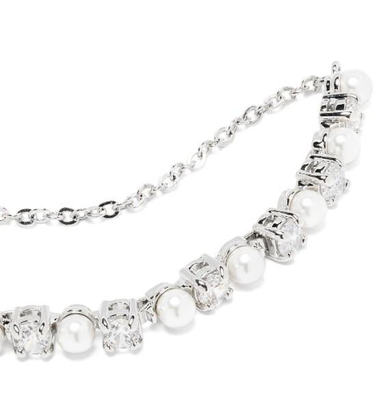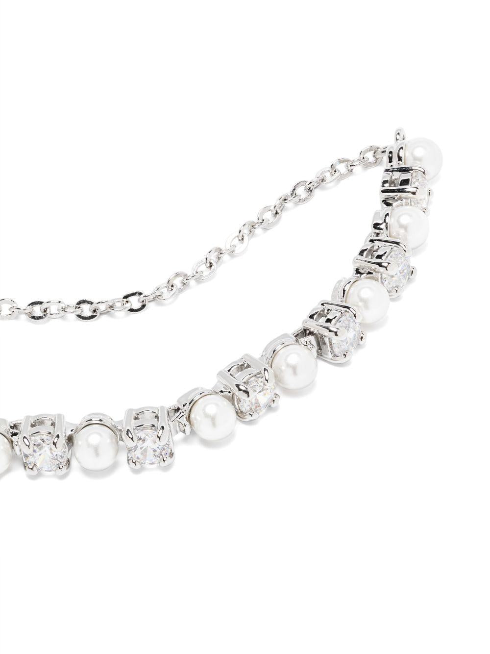 silver-tone/white brass rhodium plating Swarovski Crystal pearl detailing claw/prong setting round-cut cubic zirconia crystals delicate cable-link chain adjustable sliding fastening polished finish Normal everyday use and external agents may reduce the lustre of gemstones and gold surfaces. To maintain, use specific, non-abrasive products specially meant for cleaning jewellery.