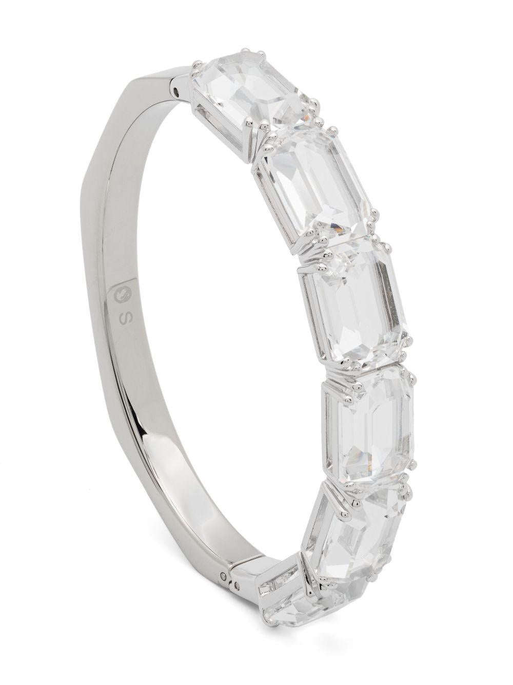 silver-tone rhodium plated brass polished finish octagonal cut Swarovski crystal embellishment claw/prong setting clasp fastening
