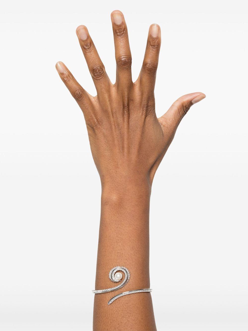 silver-tone hinge-pin fastening faux-pearl embellishment engraved logo