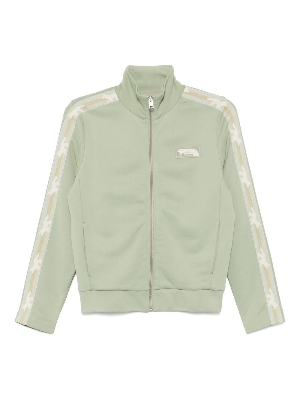 sage green front zip fastening high neck two side inset pockets logo patch at the chest