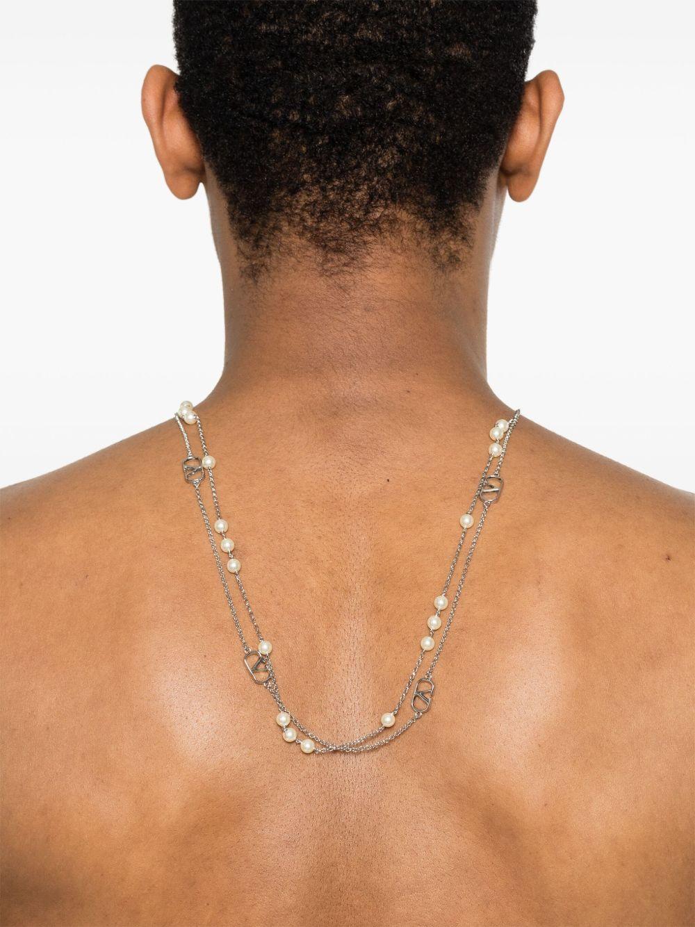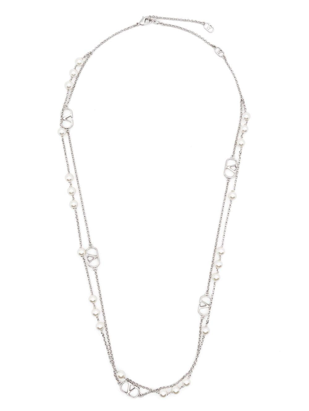 silver-tone lobster claw fastening double layer delicate chain pearl detailing