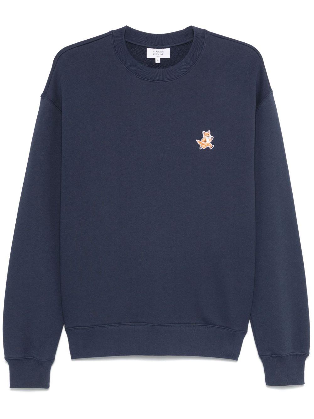 navy blue ribbed cuffs and hem French terry lining signature fox motif