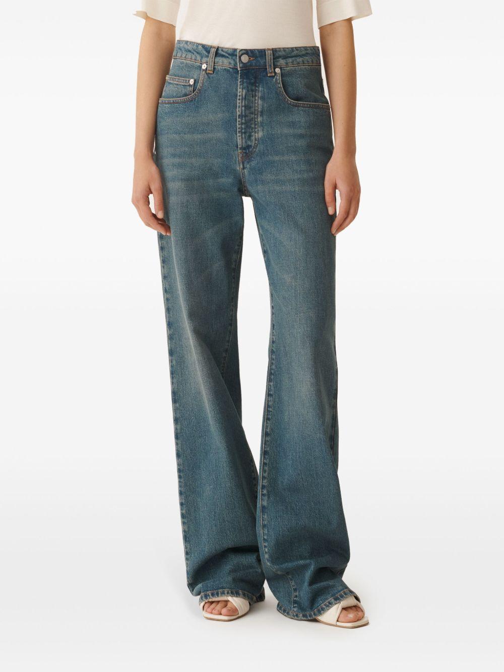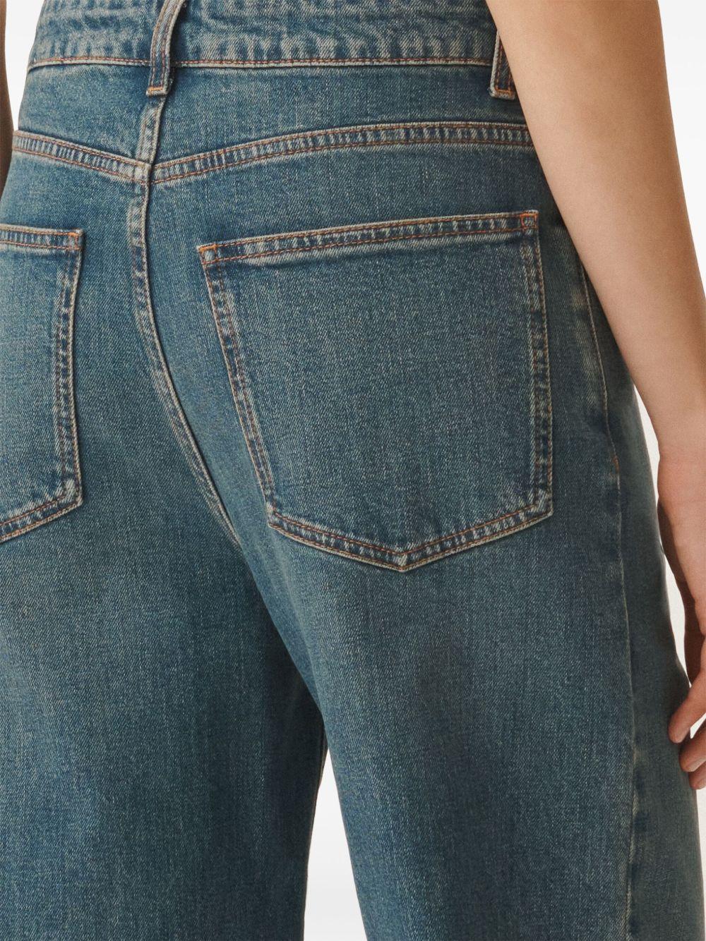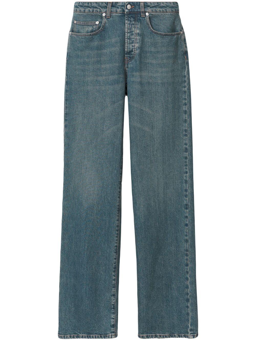 blue concealed fly and button fastening belt loops classic five pockets whiskering effect